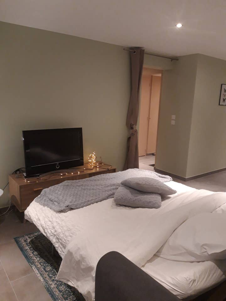 70 m2 rénové à neuf comprend une grande pièce a vivre avec coin salon comprenant une télé avec plus de 800 chaînes françaises et étrangères et cuisine entièrement équipée, 2 chambres avec couchage et linge de qualité sont à votre disposition. Une salle de bain avec douche a l italienne, sauna et un toilette. Un local à ski et vélos. Sur demande possibilité de mettre a disposition tout l équipement pour bébé (chaise haute, lit bébé)